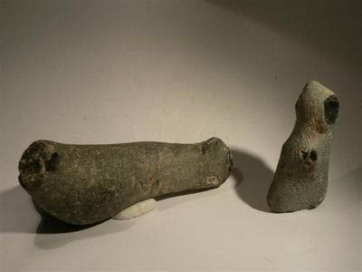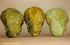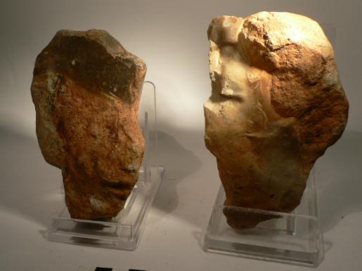 cm ( linksseitiger Stein) und 12,9 cm Größe, gefunden neben anderen Gesichtern in Groß-