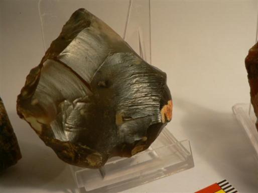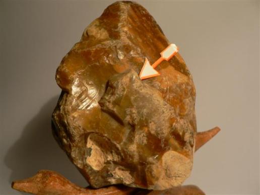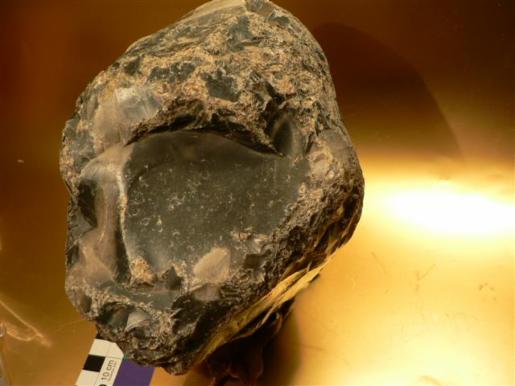 Vergleiche dazu dieses Kopfbildnis mit deutlich anerkannten Abschlagkriterien auf schwarzem Feuerstein von 1,2cm Dicke/Stärke.