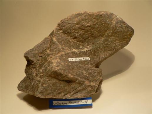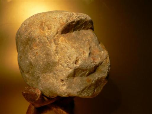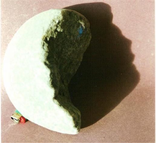 Kopfdarstellung auf härtestem Gesteinsmaterial. Large Head-impression on similar stone material.