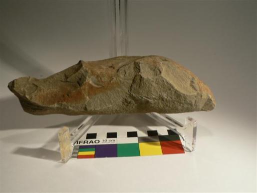 The working traces to shape the fish mouth is also evident on full size fish sculptures and on several other materials, like granit from Gr.-Pampau site and volcanic stone from the Island of LANZAROTE.