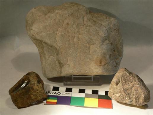 Unterschiedliche Materialien: Sandstein, Flint und quarzitischer Sandstein./ sandstone, flint and quartzite material