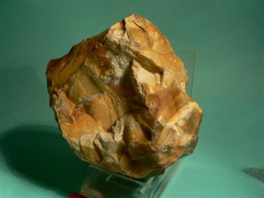 For comparison MR.KURT KOCHER, offered his find from the middel - and old palaeolithic find site of BATTENBERG,together with a reconstruction of an old-pleistocene Hippopotamus. His find is estimated older than 350.000 years, it shows, without doubt, the body of an animal, to be viewed in horizontal position, working traces are clearly shown, on one spot it has a patination resembling traces of fire.