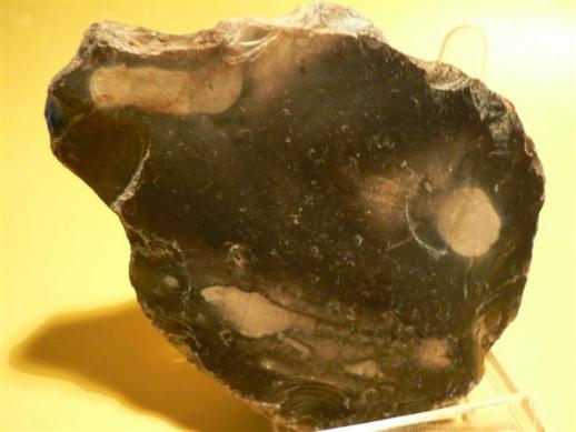 Größere Flintknolle mit unterseitigen Eingriffspuren, hier die Bewegung eines großen Meeressäugers -Wal- / Large flint object, has traces of workman ship on the bottom part of the nodule, and reminds of a large whale.